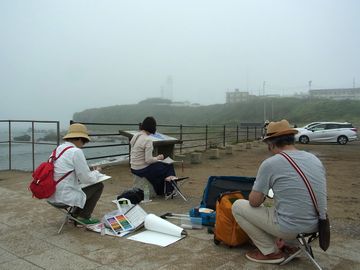 【風景スケッチ会】大型台風の影響で延期となった秋のスケッチ会は、10月14日の体育の日に千葉県我孫子市の手賀沼で開催しました。あいにくの曇天と肌寒さに負けず、生徒さん達は熱心に制作に取り組まれていました。