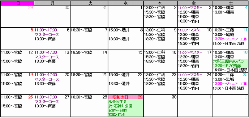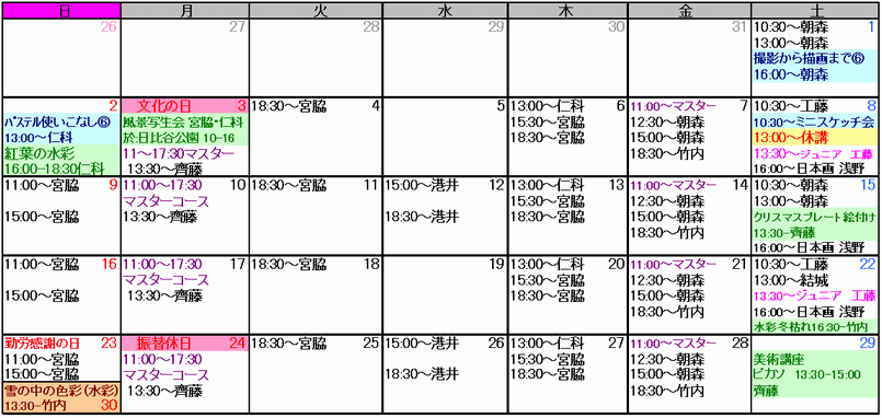 ご予約は、スクールの予約表にご記入頂くか、お電話又はメールでも受け付けています。