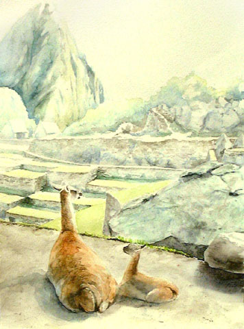 とても、バランスのとれた空間を表現した作品です。紙の白をうまく利用して光を表現しています。遠景処理も的確で描写を弱くすることで手前との空間を描き出しています。手本の写真をそのまま描き写すのではなく、作者自身の頭を通して空間を再構築することで、小さな画面に絵画的な奥行きを描き出す事に成功しています。