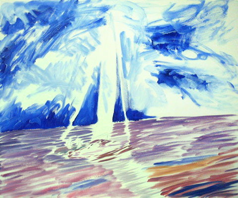 光とヨットの動きや波、風の流れなどを巧みにとらえています。筆さばきや描かれた線も変化に富み充実した画面を創り出しています。キャンバスの白の残し方もとても綺麗です。いろいろと良いところのある作品ですが、一番のポイントは観る者にその場に、居る様な気持ちにさせる描写力があるところです。
